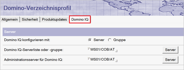 Abbildung 1: Verzeichnisprofil, Register Domino IQ